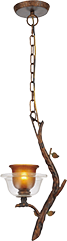 This rustic collection pays homege to nature's unrivaled beauty.Steel,hang formed "tree branches",grow upwards and around hand blown art glass.The swirled deep glden hues of the art glass evoke the changing colors of fall in the hills of vermont.